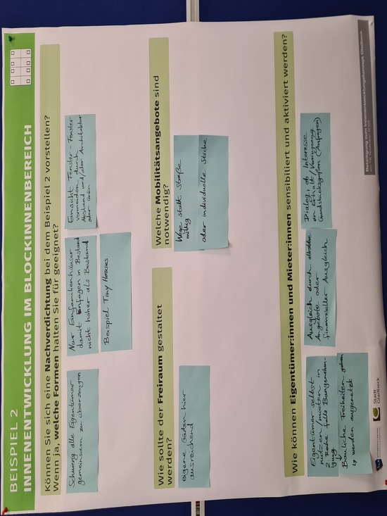 Die Anmerkungen aus dem Workshop werden im weiteren Verfahren geprüft und nach Möglichkeit im Innenentwicklungskonzept berücksichtigt.