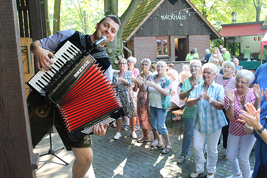 Bei strahlendem Sommerwetter sorgte Dennis Bongartz für stimmungsvolle Musik, die zum Mitsingen einlud. Beim Musikquiz wurden bei Evergreens wie „Capri-Fischer“ oder „Zwei kleine Italiener“ alte Erinnerungen wach und die Gäste erwiesen sich als beeindruckend textsicher. Das Team des Kotten zeigte sich gewohnt gastfreundlich und verwöhnte die Gäste mit Grillwürstchen, Salaten und kühlen Getränken.