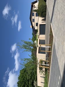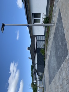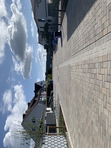 Auch die Bepflanzung er Grünflächen ist erfolgt, die neue Beleuchtung und sogar Fahrradständer stehen.
