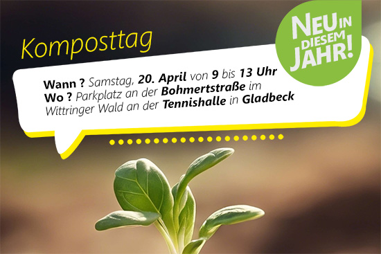 Am Samstag, 20. April, wird der ZBG daher kostenlosen Kompost, der aus dem Bioabfall aus Gladbeck gewonnen wurde, an Bürger:innen in der Zeit von 9 Uhr bis 13 Uhr verteilen. Ein Tomatenpflänzchen gibt es gratis dazu, solange der Vorrat reicht!
